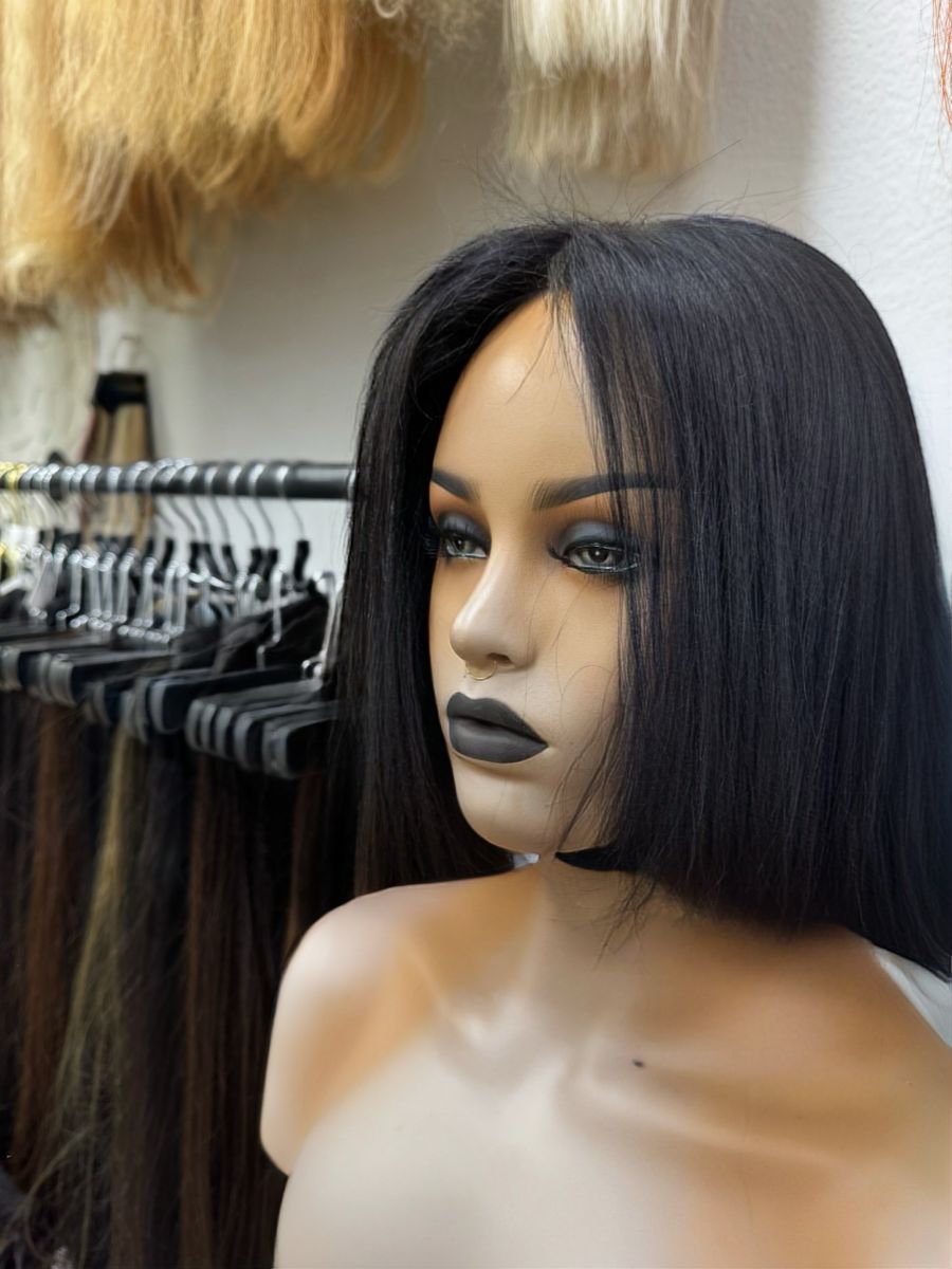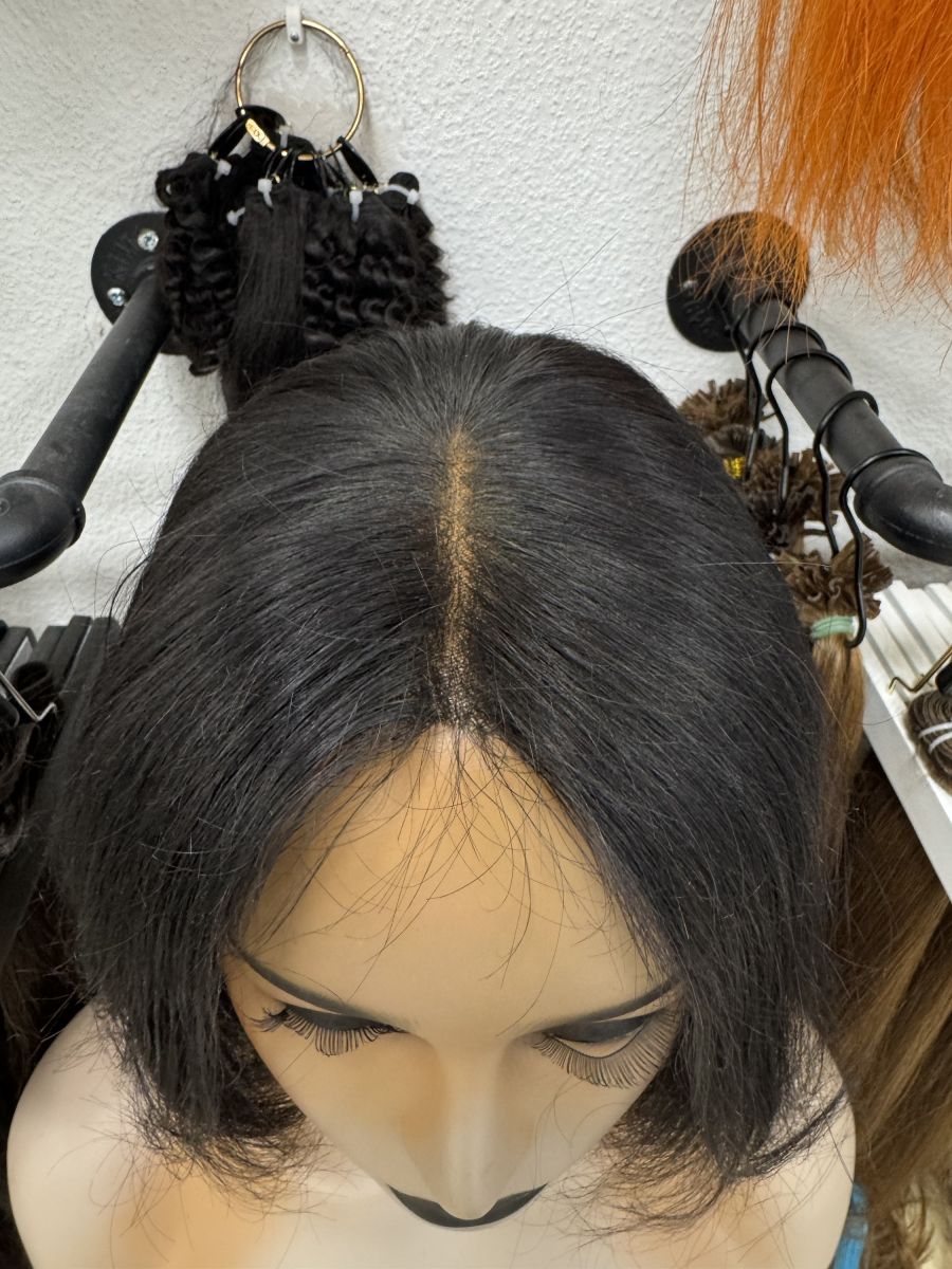 • Echthaar-Perruque Schwarze  ohne Kleber mit Pony – natürliches Aussehen, einfach zu tragen