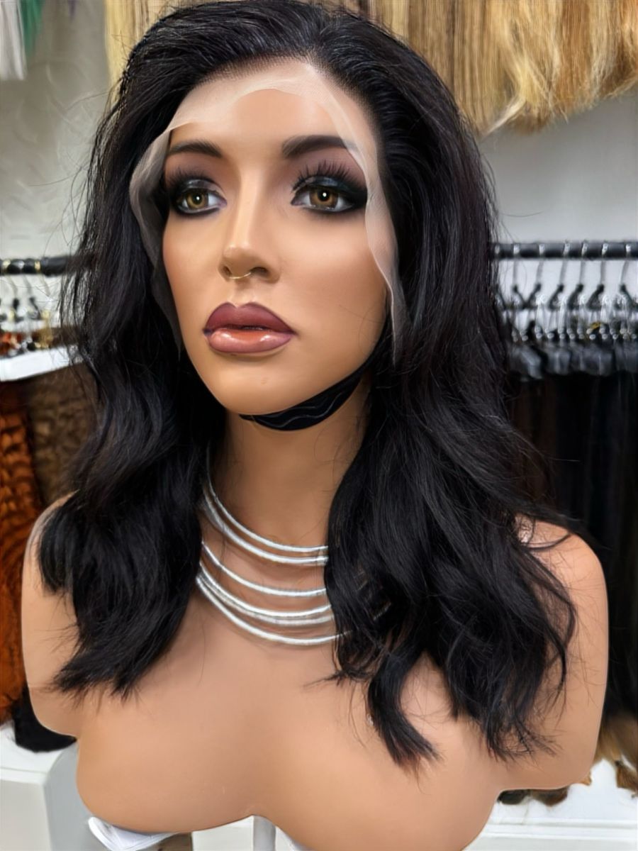 / Schulterlange gestufte Lace Front Perücke in dunkel braun